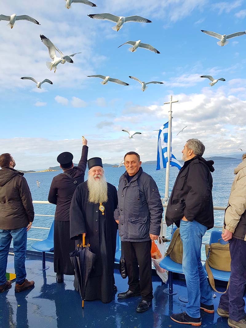 Након преспаване ноћи у Солуну поклоници су се запутили ка Светој Гори. Путем од Солуна до мјеста Уранополис које се налази на самој граници са Светом Гором и даље трајектом до светогорске луке Јованица, а одатле даље до Манастира Хиландар.