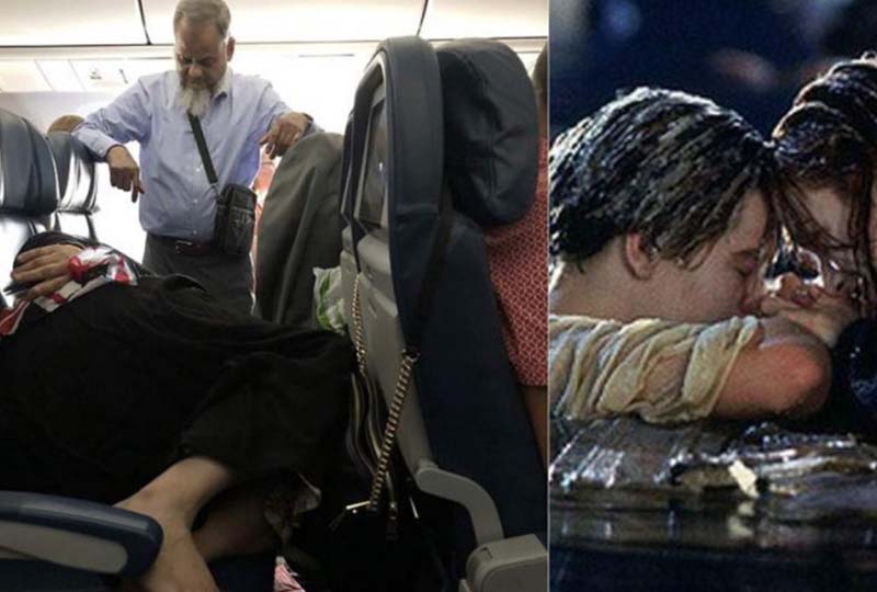 Фотографија на којој се може видјети како мушкарац стоји у авиону док се његова наводна супруга наслања на три сједишта, изазвала је бијес на друштвеним мрежама.