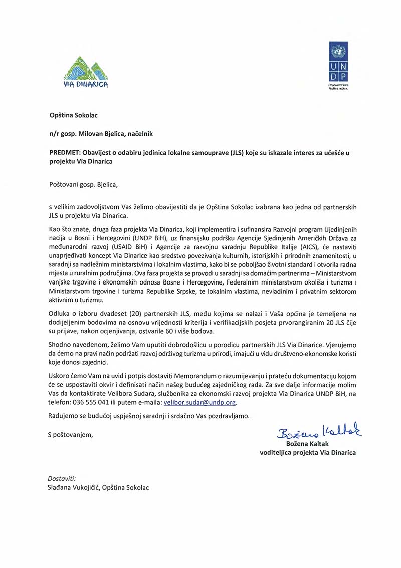 Општина Соколац је и званично изабрана као једна од 20 партнерских јединица локалне самоуправе у пројекту ,,Виа Динарика“.