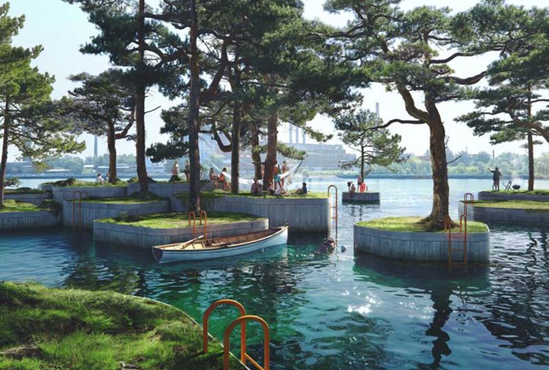 Архитекта Маршал Блечер из студија Фокстрот је још пре неколико година направио пројекат „Паркипелаг“ – мала дрвена острвца која плутају у копенхагенској луци.