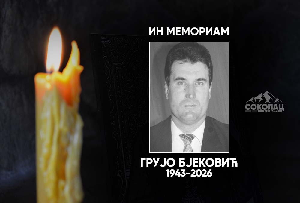 У сриједу 18. фебруара на Сокоцу, у 83. години преминуо је Грујо Бјековић, један од оснивача Фудбалског савеза Републике Српске, некадашњи директор у соколачој Гимназији и пензионисани универзитетски професор, истакнути друштвено спортски радник.