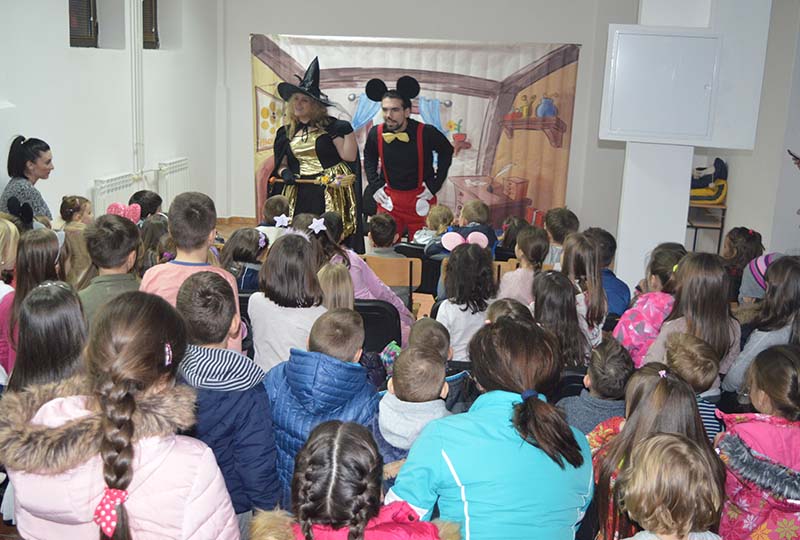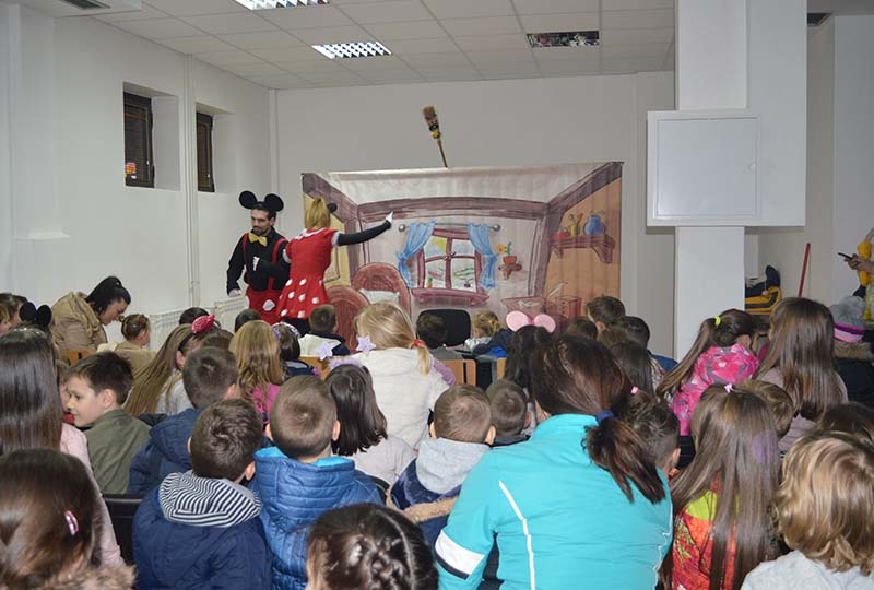Због заинтересованости великог броја дјеце, глумци су извели представу „Мики Маус и Мини“ у просторијама Високе школе за услужни бизнис.