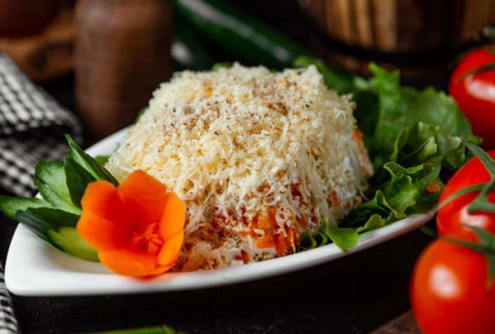 Умутимо фил од рендане шунке, павлаке, фета сира и качкаваља.