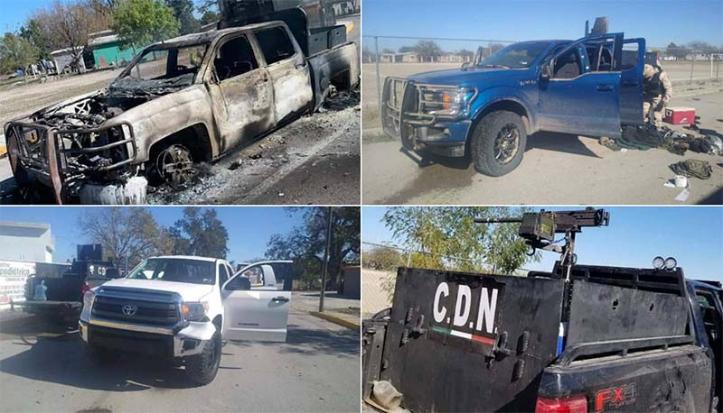 На изрешетаним камионима, који су остали на улицама, писало је Ц.Д.Н. што су шпански иницијали картела „Сјевероисток“.