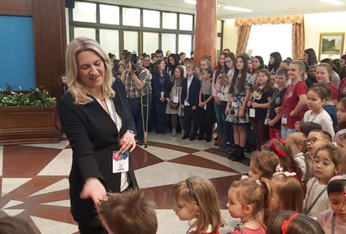 Предсједница Републике Српске Жељка Цвијановић организовала је данас пријем за око 160 младих умјетника из Српске, учеснике хуманитарне акције „С љубављу храбрим срцима“.