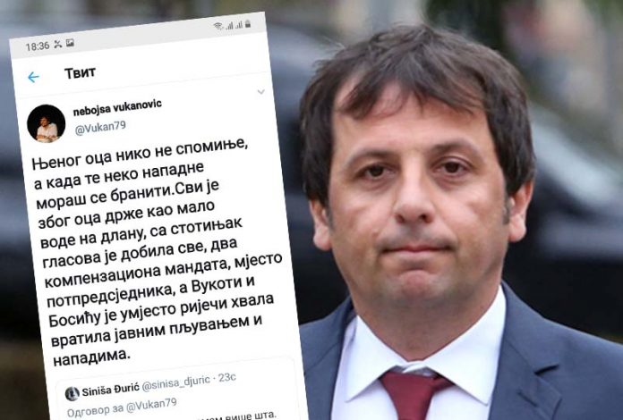 ,,Њеног оца нико не спомиње, а када те неко нападне мораш се бранити.Сви је због оца држе као мало воде на длану, са стотињак гласова је добила све, два компензациона мандата, мјесто потпредсједника, а Вукоти и Босићу је умјесто ријечи хвала вратила јавним пљувањем и нападима“ – написао је Вукановић, истовремено проглашавујући себе омиљеним човјеком у народу.