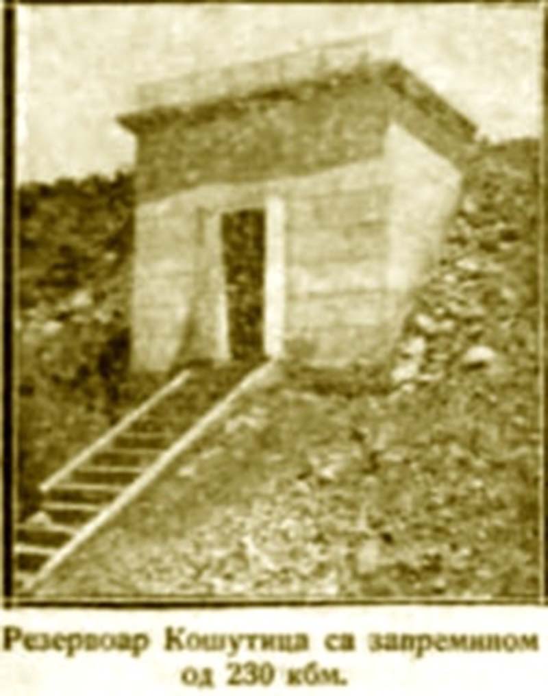 Обухваћено је врело Геруша које и за највеће суше даје 7 секундарних литара здраве и питке воде и код Кошутице је израђен резервоар од 230 кубних метара запремине. Гвозденим цевима од 100 милиметара одводи се вода на удаљеност од близу 11 километара, с огранцима од пола километра у поједина села. Ускоро ће се изградити и одвојак у село Кулу, дуг два и по километра.