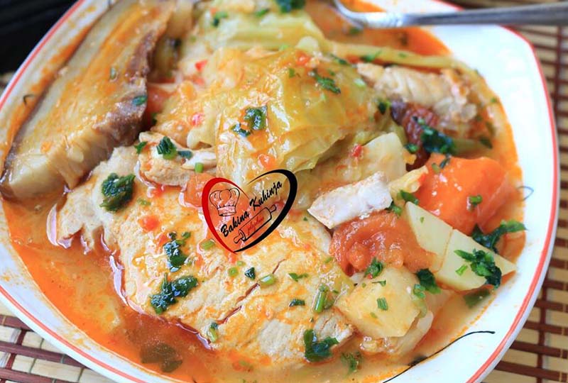 У лонац ставити крменадле целер и шаргарепу да кувају око 20 мин па додати на коцке купус, млад кромпир, парадајз, црни и бели лук, зелену паприку сланину, Налити водом до пола и кувати око 30 мин.