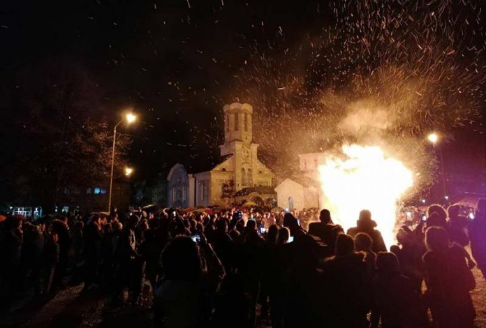 Испред православних храмова на подручју општине Пале вечерас су, након вечерњих служби, наложени бадњаци.