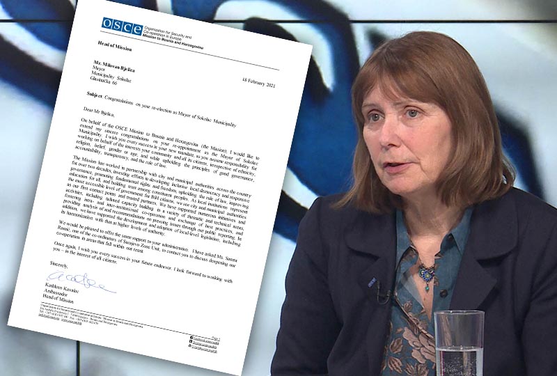 Кетлин Кавалек, амбасадорица и шефица Мисије ОСЦЕ-а у Босни и Херцеговини упутила је поздравно писмо и честитку на поновном избору начелнику општине Соколац Миловану Бјелици.
