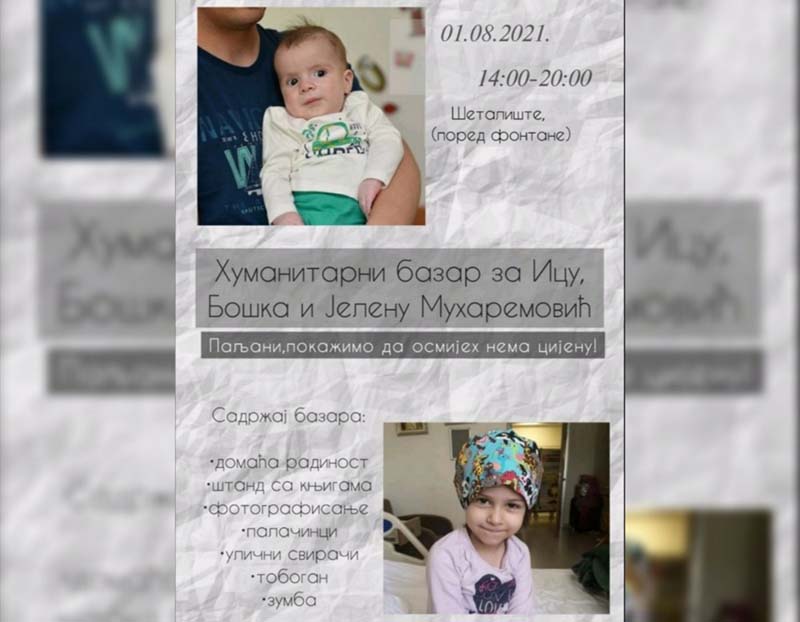 Након одржаних неколико хуманитарних базара у Палама на које се одазвао велики број грађана, планирано је одржавање још једног базара, овај пут за нашу Ицу Лавицу, маленог Бошка и Јелену Мухаремовић.