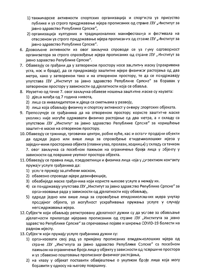 Закључак о ОБАВЕЗНОМ спровођењу мјера за реаговање на појаву болести изазване новим вирусом корона (COVID – 19) на подручју општине Соколац