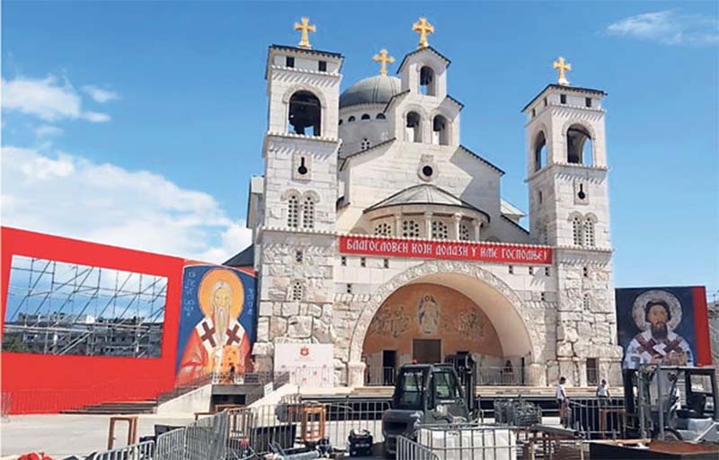 Подгорица – Испред Храма Христовог спасења у Подгорици све је спремно за дочек његове светости српског патријарха Порфирија.