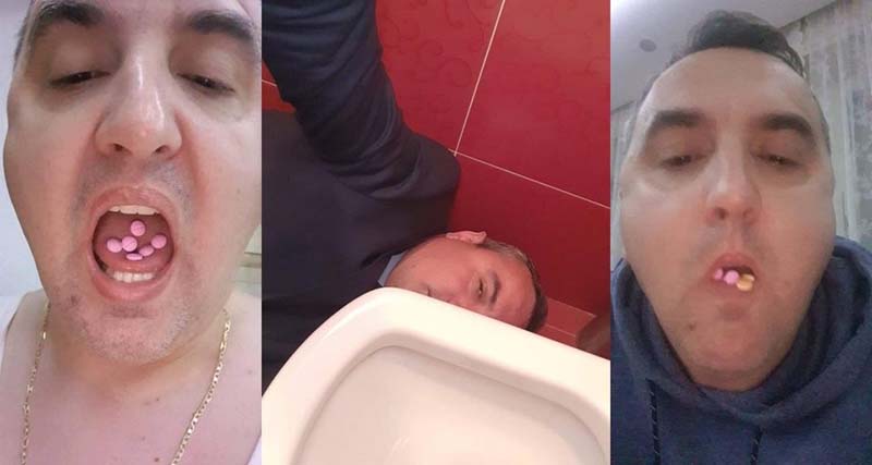 Прво су на порталима и друштвеним мрежама подијељене фотографије Павловића поред wц шоље, у алкохолисаном стању и са таблетама у устима.