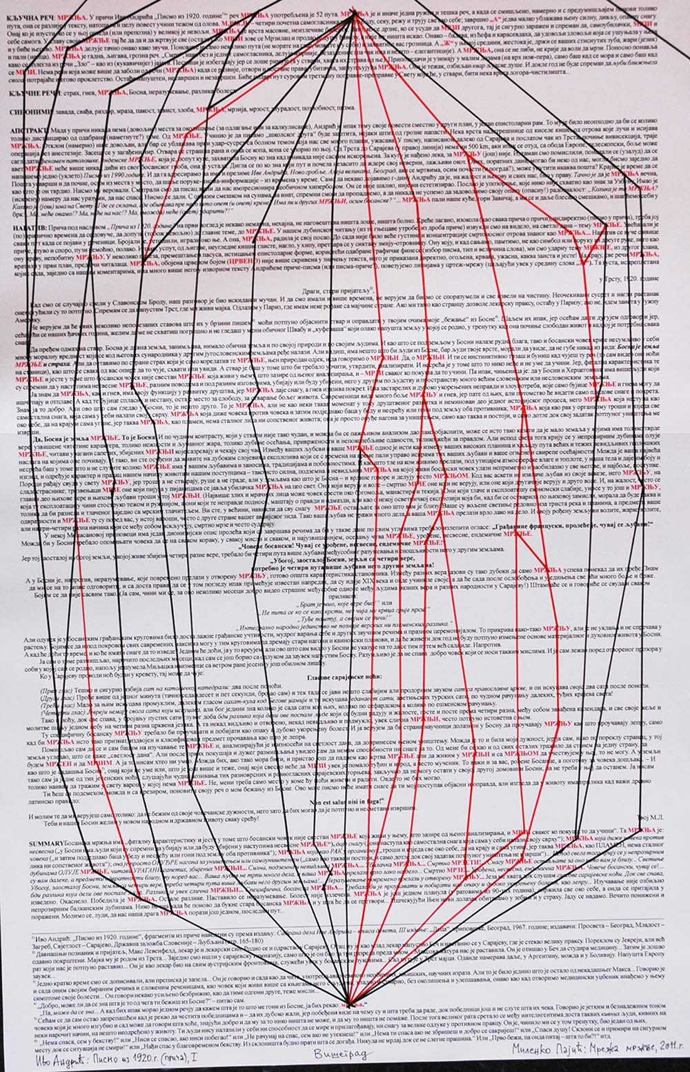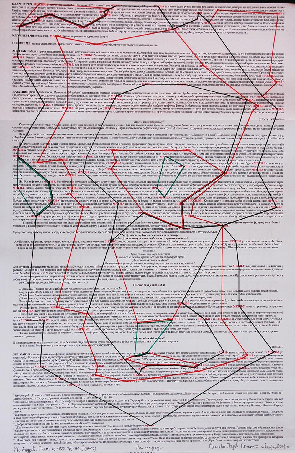 да пређем одмах на ствар. Босна је дивна земља, занимљива, нимало обична земља и по својој природи и по својим људима. И као што се под земљом у Босни налазе рудна блага, тако и босански човек крије несумњиво у себи многу моралну вредност која се код његових сународника у другим југословенским земљама ређе налази. Али видиш, има нешто што би људи из Босне, бар људи твоје врсте, морали да увиде, да не губе никад из вида: Босна је земља мржње и страха. Али да оставимо по страни страх који је само корелатив те мржње, њен природан одјек, и да говоримо о мржњи. Да, о мржњи. И ти се инстинктивно трзаш и буниш кад чујеш ту реч (то сам видео оне ноћи на станици), као што се сваки од вас опире да то чује, схвати и увиди. А ствар је баш у томе што би то требало уочити, утврдити, анализирати. И несрећа је у томе што то нико неће и не уме да учини. Јер, фатална карактеристика те мржње и јесте у томе што босански човек није свестан мржње која живи у њему, што зазире од њеног анализирања, и мрзи свакога ко покуша да то учини. Па ипак, чињеница је: да у Босни и Херцеговини има више људи који су спремни да у наступима несвесне мржње, разним поводима и под разним изговорима, убијају или буду убијени, него у другим по људству и пространству много већим словенским и несловенским земљама.