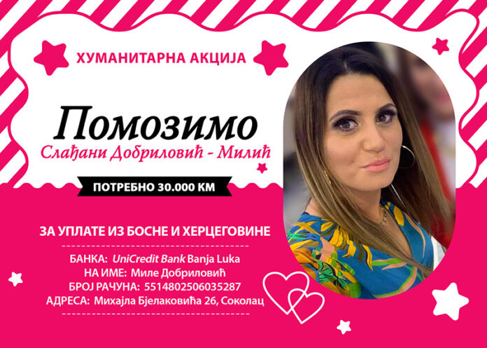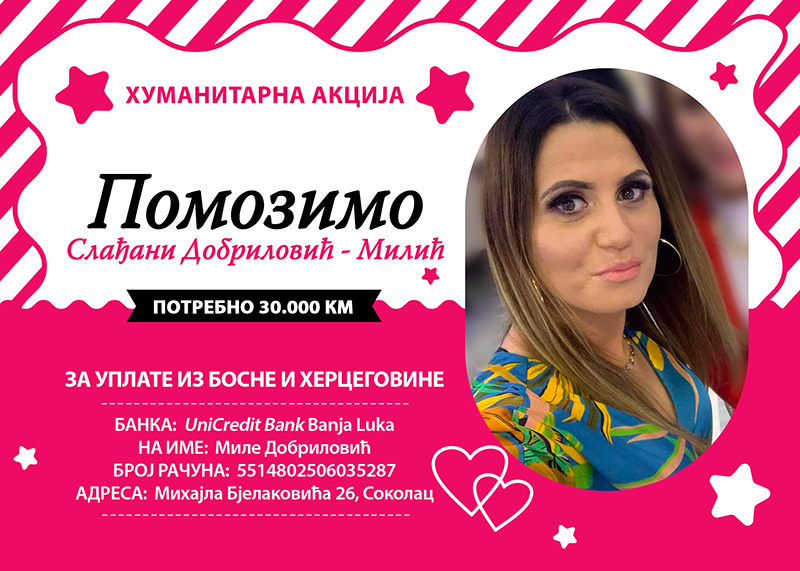 Слађани Добриловић – Милић, мајци трогодишњег дјечака Лазара, недавно је дијагностификован карцином дојке. Након првог циклуса лијечења хемотерапијом, љекари су установили да се карцином шири, да терапија не помаже и да Слађана мора бити хитно оперисана на клинци у Турској.