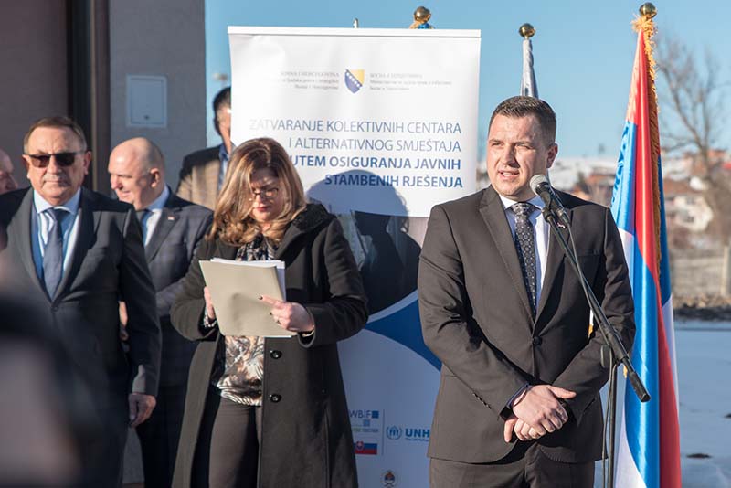 Он је напоменуо да су ова два објекта вриједности 2.800.000 КМ, изграђена кредитним средствима у оквиру пројекта ЦЕБ два – затварања колективних центара и алтернативних смјештаја.
