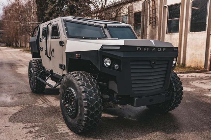 „Вихор је пројектован за 2+2 или 2+3 члана посаде, смештена у засебној балистички заштићеној капсули. Покреће га дизел мотор минималне снаге 200кW, 6-степени аутоматски мјењач, двостепени разводник погона, а од опреме А/Ц, вентилација, камере, џи-пи-ес, ПП систем, отворе за дејствовање из возила, носаче наоружања, светлосна и звучна сигнализација“, наводи се у саопштењу.