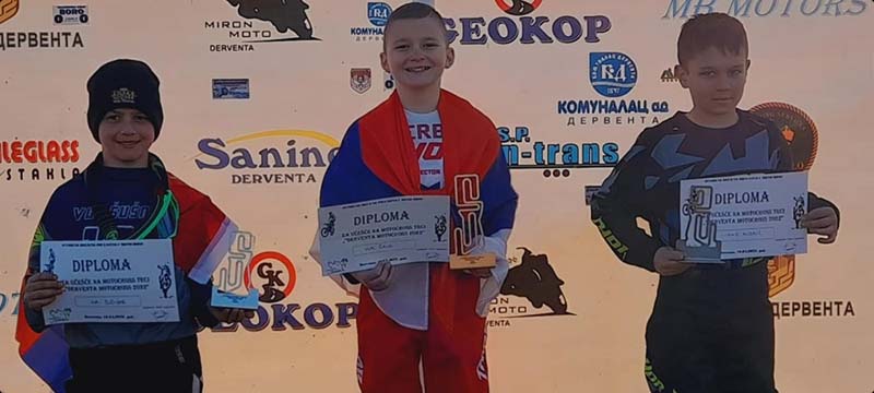 На првој трци Отвореног шампионата Босне и Херцеговине у мотокросу, која је одржана 10. априла у Дервенти, српски репрезентативац Вук Ћајић из Рогатице, освојио је прво мјесто.