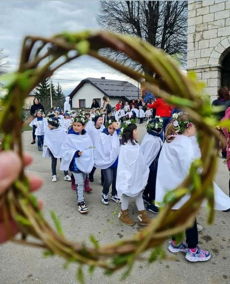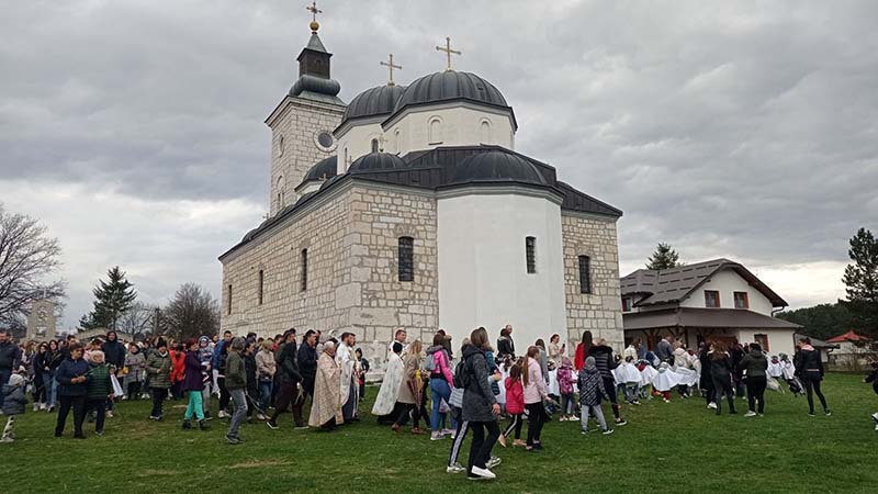Директор соколачког вртића Споменка Маловић рекла је Срни да су малишани обучени у бијели плашт са вјенчићима на глави организовали опход око храма носећи врбове гранчице, у присуству великог броја грађана.