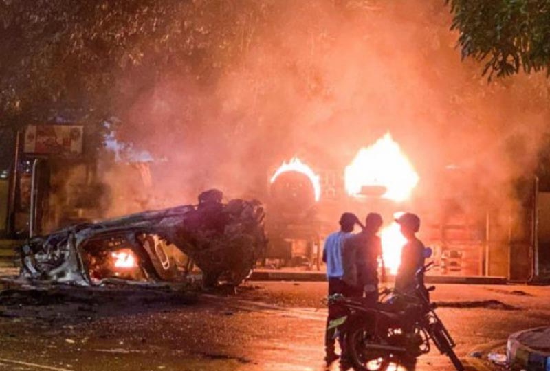 Оставка премијера услиједила је након што је уведен полицијски час у цијелој земљи након насиља на великом протесту у Цоломбу, гдје су провладине присталице напале демонстранте, а полиција је одговорила сузавцем и воденим топовима.