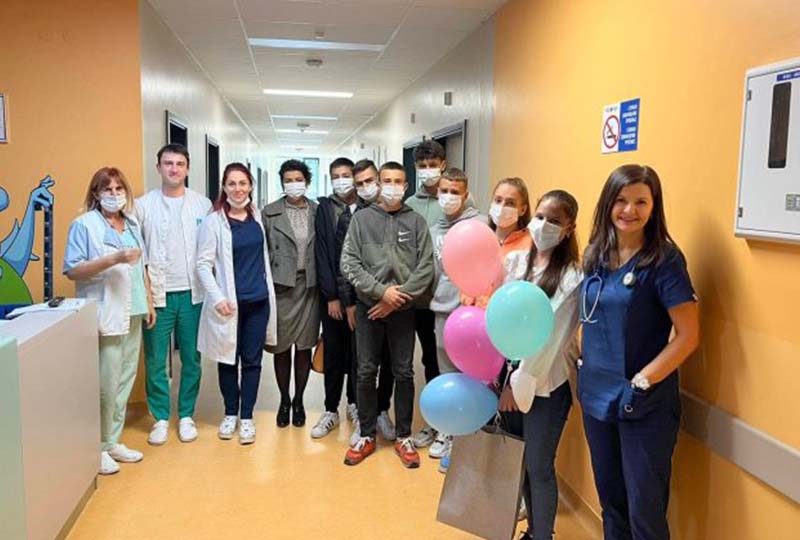 Поводом обиљежавања Дјечије недјеље ученици Средње школе ,,28. јуни“ са професорицом Тањом Нишић, посјетили су Одјељење педијатрије у ЈЗУ Болница „Србија“ у Касиндолу.