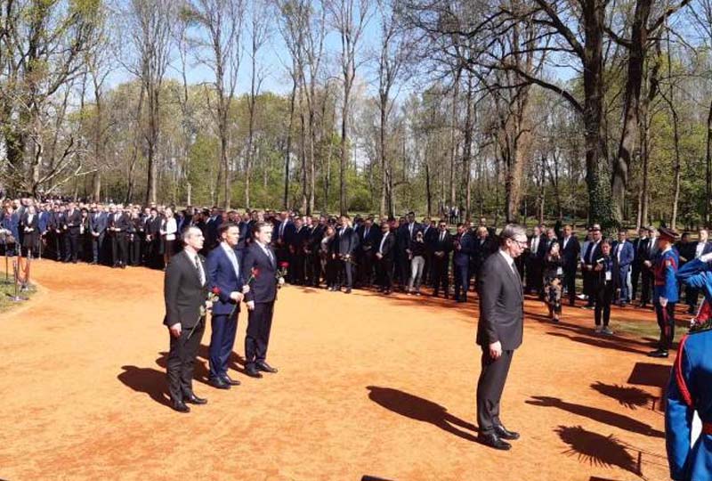 Вијенац је положио и предсједник Србије Александар Вучић, а са њим су у пратњи били предсједник Скупштине Србије Владимир Орлић, потпредсједник Владе Србије Ивица Дачић и министар за рад, запошљавање, борачка и социјална питања Србије Никола Селаковић.