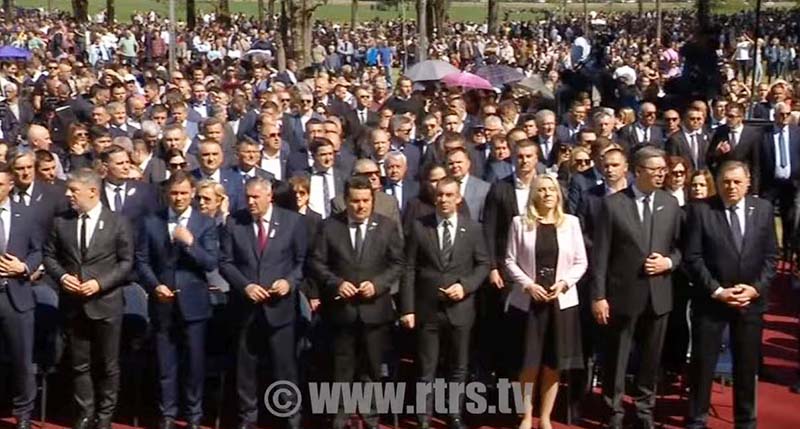 У име институција Републике Срске вијенац су положили предсједник Српске Милорад Додик, предсједник Народне скупштине Ненад Стевандић, премијер Радован Вишковић и српски члан и предсједавајућа Предсједништва БиХ Жељка Цвијановић.