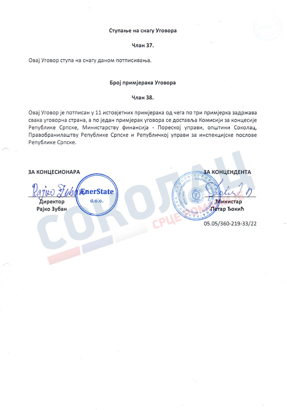 Да подсјетимо, Уговор о додјели концесије су у име Владе Републике Српске 6.јануара ове године у Бањој Луци потписали ресорни министар Петар Ђокић, а у име инвеститора, компаније Енер Стејт Рајко Зубан.