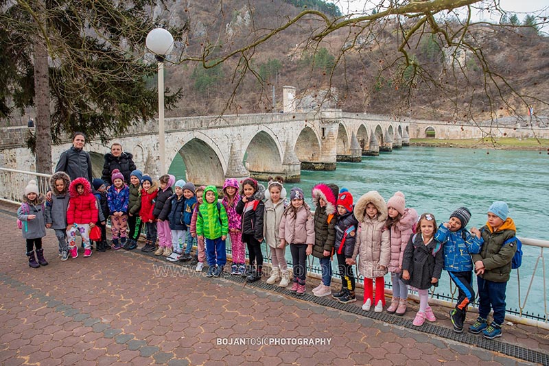 Предшколска дјеца која похађају Установу за предшколско образовање и васпитање у Сокоцу заједно са васпитачима и руководством ове установе посјетили су јуче Вишеград и обишли знаменитости овог града.
