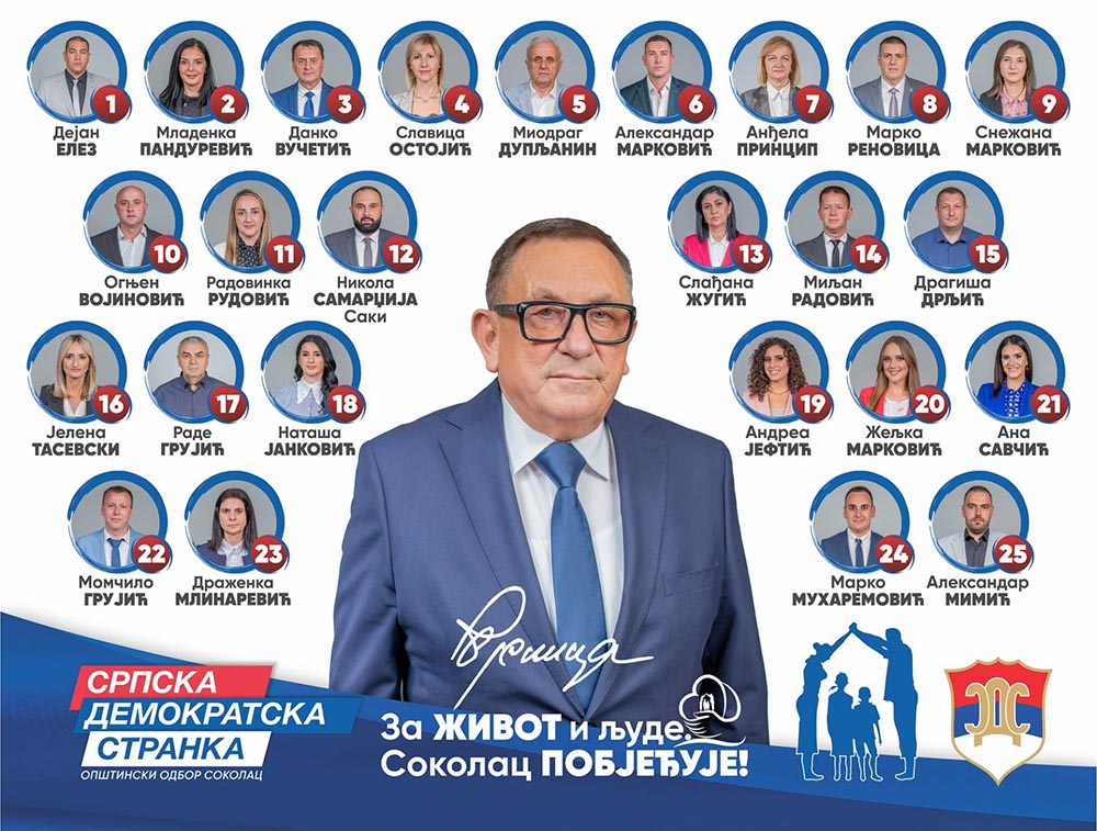 У склопу изборне кампање за локалне изборе 2024.године портал „Соколац-срце Романије“ представља кандидатске листе политичких субјеката са подручју општине Соколац, а у складу са јавним позивом објављеним 14.августа. Данас Вам представљамо кандидате ОО Српске демократске странке Соколац.