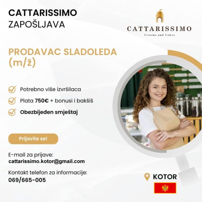 Посластичарница CATTARISSIMO из Котора расписује конкурс за радно мјесто: