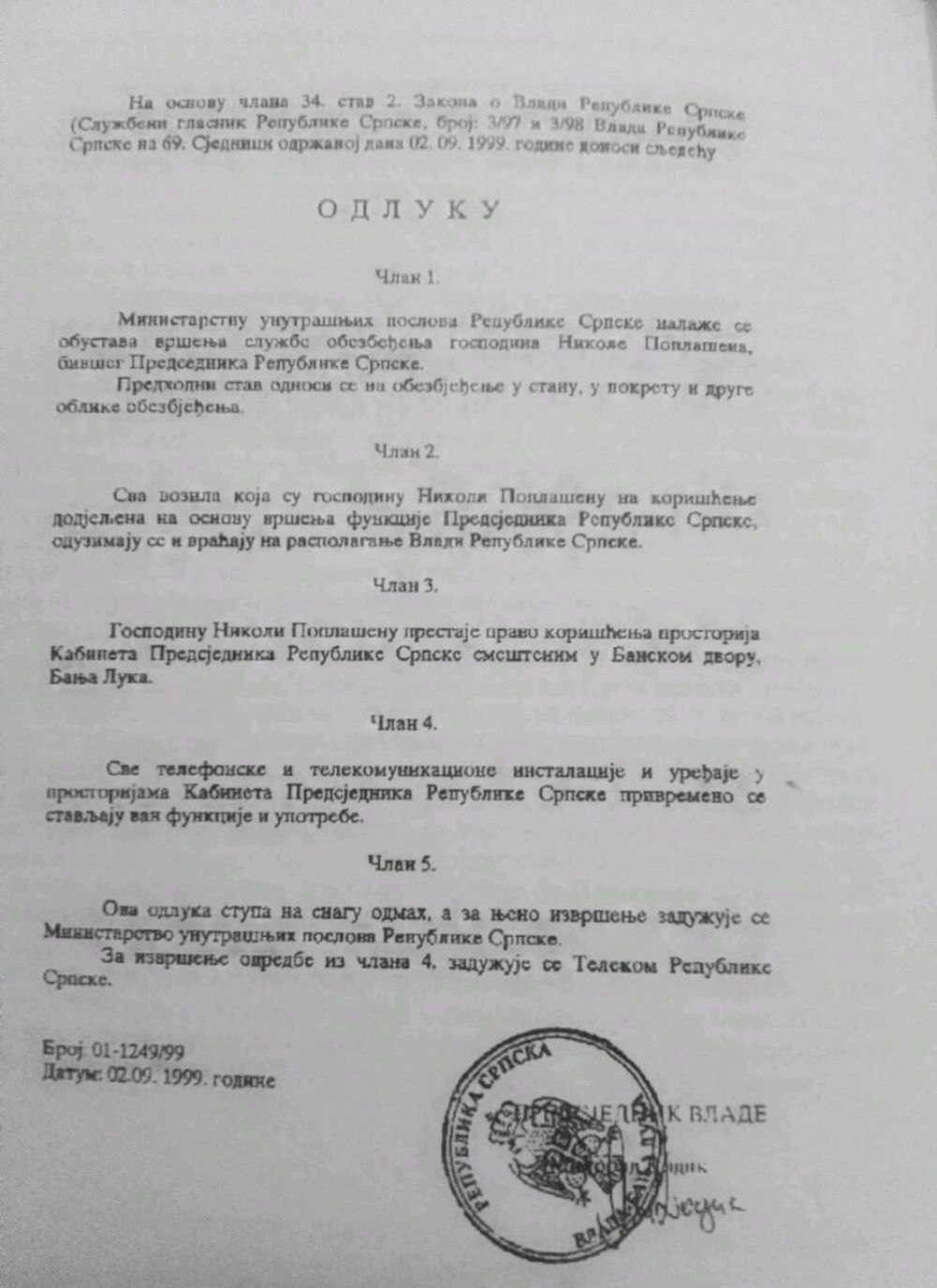 Подсјећамо да је високи представник 1999. смијенио легално изабраног предсједника Републике Српске Николу Поплашена, а 2003. и 2004.године преко 100 функционера СДС-а. Тада нисте позивали на јединство, нити сте бранили институције Републике Српске. Управо је Милорад Додик након те смјене Николи Поплашену лично одузео сва права, избацио га из Банског двора и ускратио му овлашћења која припадају легално изабраном предсједнику Републике Српске.