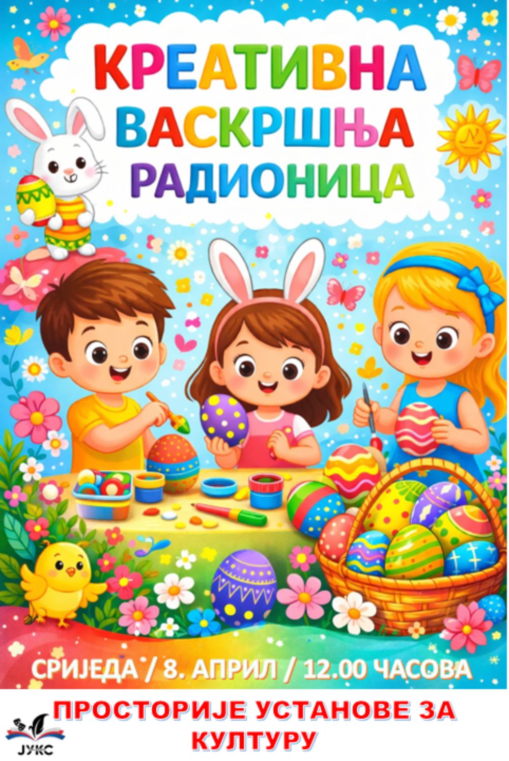 Ова радионица има за циљ да најмлађима приближи дух Васкрса кроз игру, креативно изражавање и дружење. Дјеца ће имати прилику да учествују у осликавању и украшавању васкршњих јаја, изради декорација, као и другим забавним и едукативним активностима прилагођених њиховом узрасту.